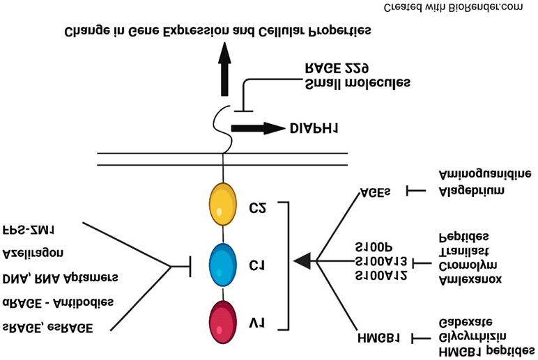 DIAPH1 binds intracellularly to RAGE, enabling a cascade of harmful downstream signals that disrupt cellular homeostasis [4,16]. Overactivity of this axis is found in diabetic tissues with poor healing and chronic inflammation [18,14].